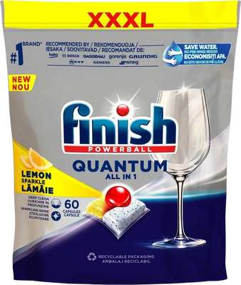 Finish Quantum All-in-1 Lemon tablety do myčky nádobí 60 ksVše o produktuDoplňující informaceHodnocení produktuKapsle také poskytují účinnou ochranu myčky nádobí, filtru a zabraňují tvorbě vodního kamene. Také odstraňují zbytky spáleného jídla a dodávají nádobí oslňující lesk bez šmouh. Finish Quantum Ultimate také pracují při nízkých teplotách.