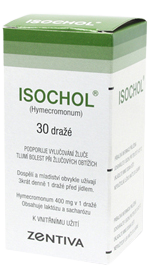 Lék Isochol odstraňuje, mimo jiné, chronickou zácpu způsobenou nedostatkem žluče ve střevě. Tablety Isochol obsahují léčivou látku hymechromon, která podporuje tvorbu a vylučování žluče, zmírňuje bolest při žlučových problémech tím, že uvolňuje bolestivé křeče hladkého svalstva žlučníku, žlučovodů a především jejich svěračů.