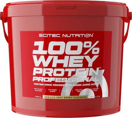 SciTec Nutrition 100% Whey Protein Professional vanilka/lesní plody 5000 gVše o produktuDoplňující informaceHodnocení produktuWhey Protein Professional od společnosti Scitec Nutrition má hodnocení dlouhodobě nejlépe chutnajícího proteinu na českém trhu, navíc díky svému složení patří také ke špičce. Obsahuje vysoký podíl kvalitních syrovátkových bílkovin získaných ultra-mikrofiltračním procesem. Navíc obsahuje trávicí enzymy papain (extrahovaný z papáji) a bromelain (z ananasovníku).