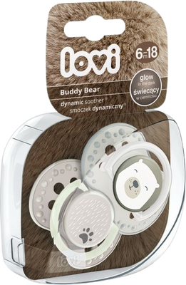 LOVI Dudlík silikonový dynamický Buddy Bear 6-18m 2 ksVše o produktuDoplňující informaceHodnocení produktuDynamické šidítko LOVI bylo vytvořeno ve spolupráci s neurologopedy s cílem zajistit přirozený a zdravý vývoj zubního patra, zubů a dásní dítěte. Silikonové symetrické dynamické šidítko LOVI bylo klinicky testováno.