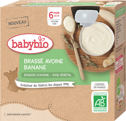 BIO příkrm (brassé) od 6 měsíců z rostlinného mléka. Kombinace ovesného bio mléka a chutných banánů. Krémový a vydatný mléčný dezert s jemnou chutí pro všechny malé labužníky. Bez laktózová alternativa k mléčným dezertům vyrobeným z mléka živočišného původu. Bohatý zdroj vlákniny, bílkovin, vitamínů i minerálů. Více informací