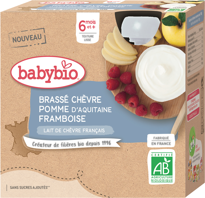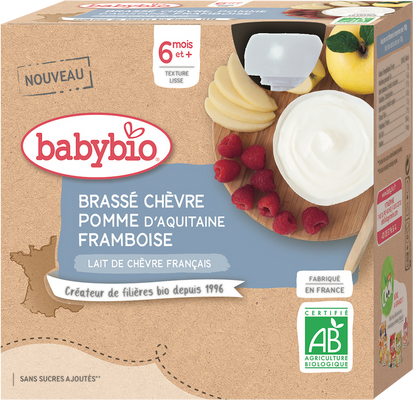 BIO mléčný příkrm (brassé) od 6 měsíců v praktické kapsičce. Dezert z kozího bio mléka pro všechny malé jedlíky. Kombinace fermentované kozího bio mléka, jablek z Aquitaine a svěžích malin. Kozí mléko má lahodnou chuť a díky přirozeně minimálnímu obsahu αs1 kaseinu je snadněji stravitelné. Více informací
