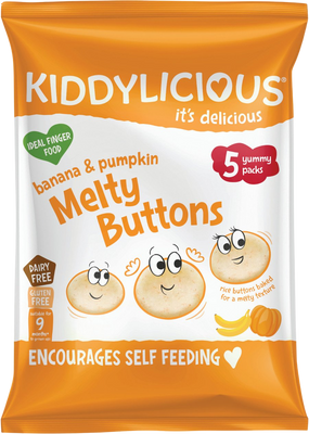 Ovocno - zeleninové knoflíčky Banán s dýní Kiddylicious jsou dokonalou a zdravou sladkostí. Více informací