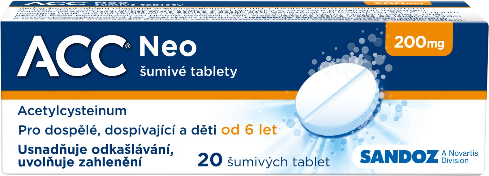 ACC® NEO 200 mg šumivé tablety, volně prodejný léčivý přípravek na vlhký kašel. K vnitřnímu užití s účinnou látkou acetylcystein. Čtěte pozorně příbalový leták.