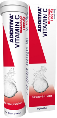 1 šumivá tableta obsahuje: acidum ascorbicum (1000 mg). Pomocné látky se známým účinkem: oranžová žluť, azorubin, sorbitol a sodík (320,87 mg).