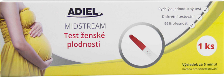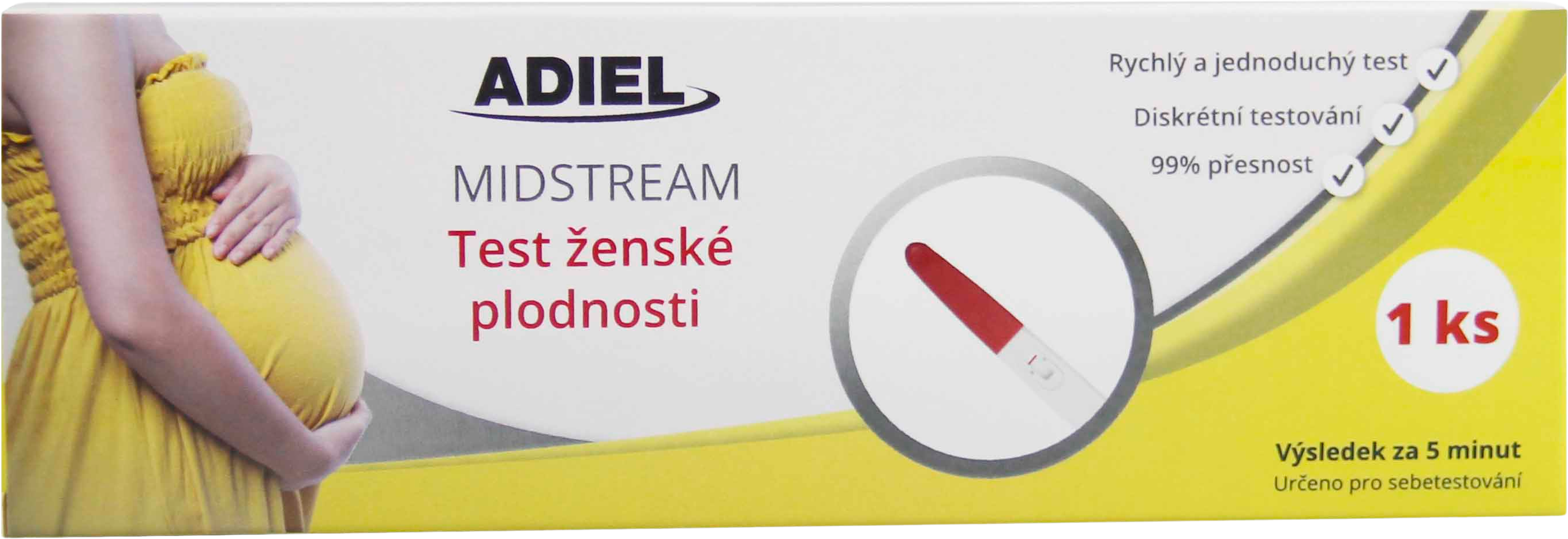 - Náš Adiel test ženské plodnosti je rychlý test na koncentraci FSH v moči, balení obsahuje jeden Adiel test ženské plodnosti a instruktážní leták, a pokud je výsledek testu pozitivní, je indikátorem snížené plodnosti.