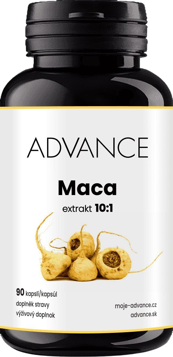 Přípravek ADVANCE Maca obsahuje vysoce koncentrovaný extrakt 10:1 z kořene řeřichy peruánské známé jako Maca (Lepidium meyenii). Díky tomu jsou obsaženy biologicky aktivní látky v 10krát vyšší koncentraci než v samotném kořeni maca.