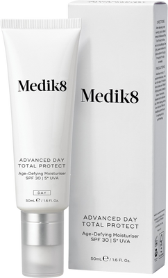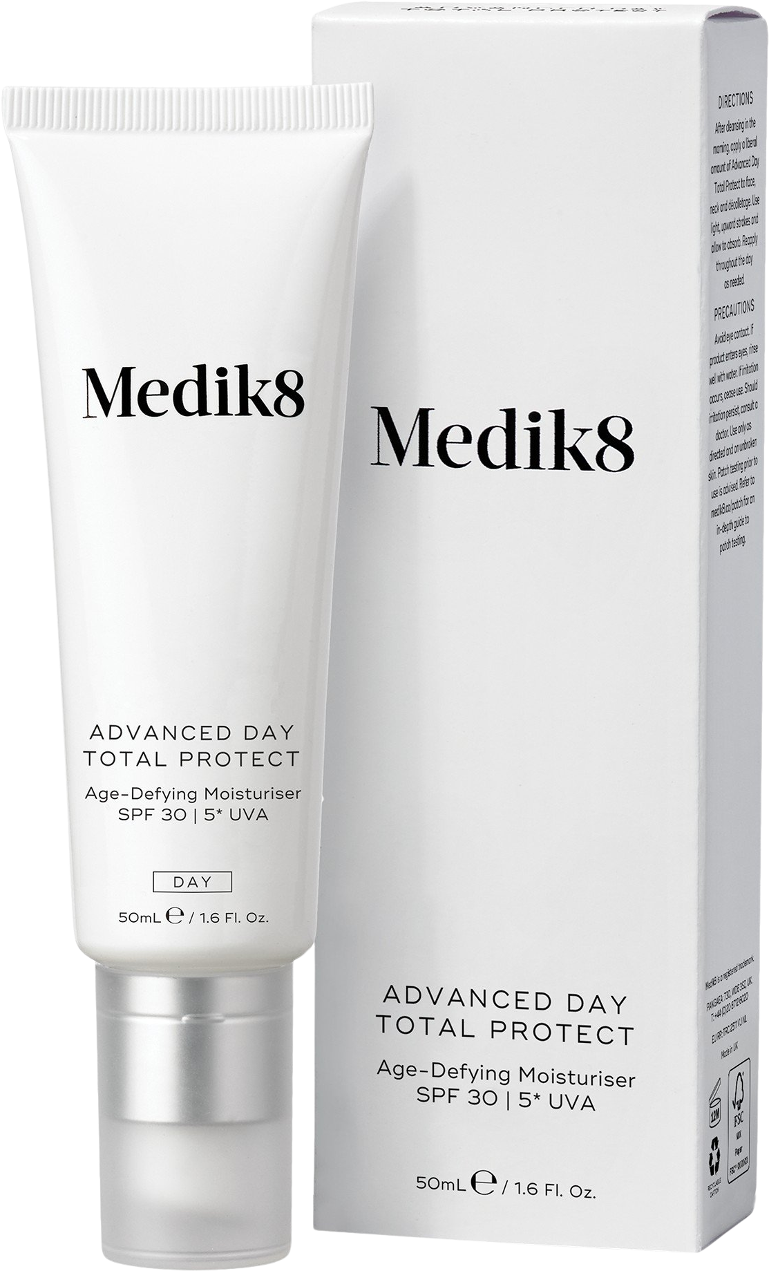 Medik8 Advanced Day Total Protect Hydratační krém SPF30 50 mlVše o produktuDoplňující informaceHodnocení produktuLidská kůže je neustále pod tlakem vnějšího prostředí. Ať už se jedná o ultrafialové paprsky, znečištění, modré světlo, infračervené záření nebo glykaci, to vše může kůži poškozovat. Tento denní krém však pleť před všemi těmito riziky chrání, a brání tak jejímu předčasnému stárnutí.