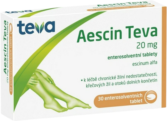 Přípravek není určen pro děti a dospívající do 18 let věku. V případě souběžného užívání antikoagulancií je nutno provádět častý monitoring parametrů krevní srážlivosti. Je nezbytné kombinovat užívání přípravku spolu s dalšími neinvazivními opatřeními předepsanými lékařem, jako je bandážování dolních končetin, nošení kompresních punčoch nebo používání studené vody. Aescin Teva je lék k vnitřnímu užití. Obsahuje účinnou látku escinum alfa.