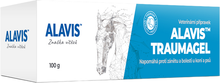 Pohotová pomoc při bolesti pohybového aparátu koní a psů ALAVIS™ Traumagel je přírodní přípravek, který obsahuje menthol a patentově chráněnou látku Celadrin složenou z cetylovaných esterů kyseliny myristové, myristoolejové, palmitové a dalších nasycených a nenasycených mastných kyselin zesilujících celkový pozitivní účinek. ALAVIS™ Traumagel napomáhá zvýšit ochranu před působením prozánětlivých enzymů, výrazně napomáhá tlumit bolestivost svalů, kloubů a kostí.