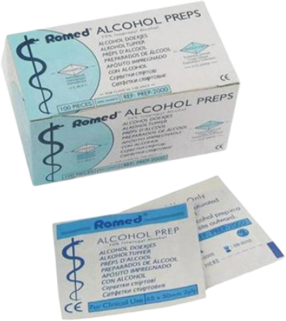 Tampony pro jednorázovou dezinfekci pokožky před injekcí. Balení Alcohol Preps obsahuje 100 individuálně zatavených zvlhčených tamponů z netkaného textilu o rozměru 65x30 mm. Každý tamponek obsahuje 0,5 ml Isopropanolu (70 % V/V). Více informací