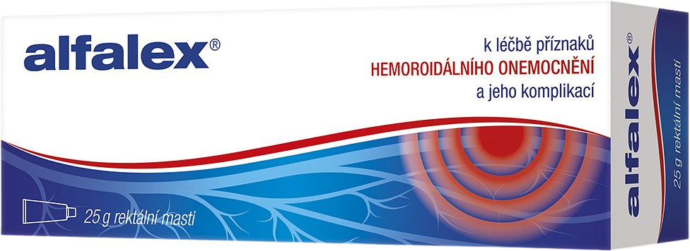 Zdravotnický prostředek. Alfalex rektální mast je určená k léčbě příznaků spojených s hemoroidálním onemocněním a jeho komplikacemi (např. ekzém a praskliny). Více informací