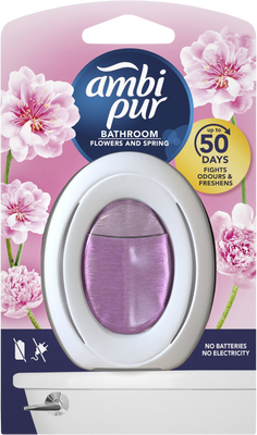 Ambipur Ambi Pur Bathroom Flowers and Spring Osvěžovač Vzduchu 1 ks 7.5 mlVše o produktuDoplňující informaceHodnocení produktuNáš první koupelnový osvěžovač vzduchu pro nepřetržité použití bez elektřiny odstraňuje pachy ze vzduchu, a navíc zabraňuje jejich usazování na měkkých površích, jako jsou ručníky, vany a sprchové závěsy. Díky jedinečné technologii Odour ClearTM přináší Ambi Pur Bathroom nepřetržitou svěžest po dobu až 50 dnů, aby byla vaše koupelna neustále připravená přijmout hosty. Protože nepotřebujete elektřinu ani baterie, Ambi Pur Bathroom se pohodlně a snadno používá. Je dostupný v různých vůních.