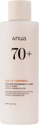 Anua Rice 70% Glow Milky Toner Hydratační pleťové tonikum 250 mlVše o produktuDoplňující informaceHodnocení produktuRice 70% Glow Milky Toner je inovativní korejské pleťové tonikum s vysokým obsahem 70% rýžové vody, které poskytuje intenzivní hydrataci a rozjasnění pleti. Tento jedinečný přípravek kombinuje tradičními korejské ingredience s moderními technologiemi péče o pleť.