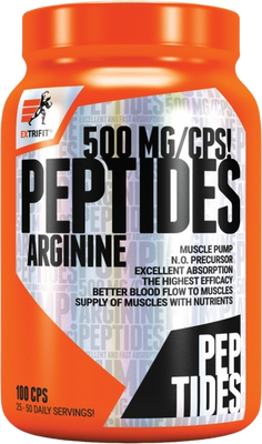 Pumpa, prokrvení, tvorba oxidu dusnatého! Základ suplementace každého kulturisty. Mimořádně silný arginin v peptidové formě. V jediné kapsli Peptides Arginine od Extrifitu je 500 mg peptidů argininu. V současnosti je tato forma argininu považována za vůbec nejkvalitnější, má nejvyšší účinek a vstřebatelnost.