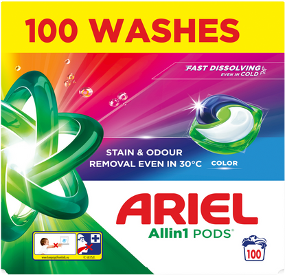 Ariel Allin1 PODS, Color, kapsle na praní 100 ksVše o produktuDoplňující informaceHodnocení produktuAriel, značka doporučovaná výrobci praček Whirlpool, Electrolux, Candy a Beko, představuje kapsle na praní Ariel Allin1 PODS Color, které odstraňují odolné skvrny a zápach dokonce i při 30 °C. Jsou navrženy tak, aby fungovaly skvěle i při praní na nižší teplotu, rychle se rozpouštěly i ve studené vodě a poskytovaly dokonalé výsledky.