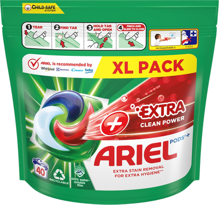 Výjimečná prací síla v jedné malé kapsli. Kapsle na praní prádla Ariel All-in-1 PODs +Extra Clean Power mají unikátní vícekomorový design, který udrží složky stabilně oddělené do doby, než se namočí, což zaručuje super koncentrovanou prací sílu. Více informací