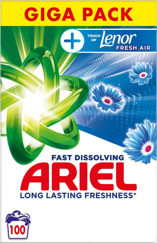 Díky svému koncentrovanému složení poskytuje prášek na praní ARIEL silnější účinek a vypere tak více prádla na gram. Umožňuje vynikající odstraňování skvrn už při prvním praní. Přináší svěžest a poskytuje vynikající pocit čistoty i při praní na nižší teplotu. (Spotřeba energie pračky při snížení teploty praní z 60 °C na 30 °C, běžný prací cyklus). Studené prací cykly navíc pomáhají chránit vaše tkaniny déle než při praní v teplé vodě.