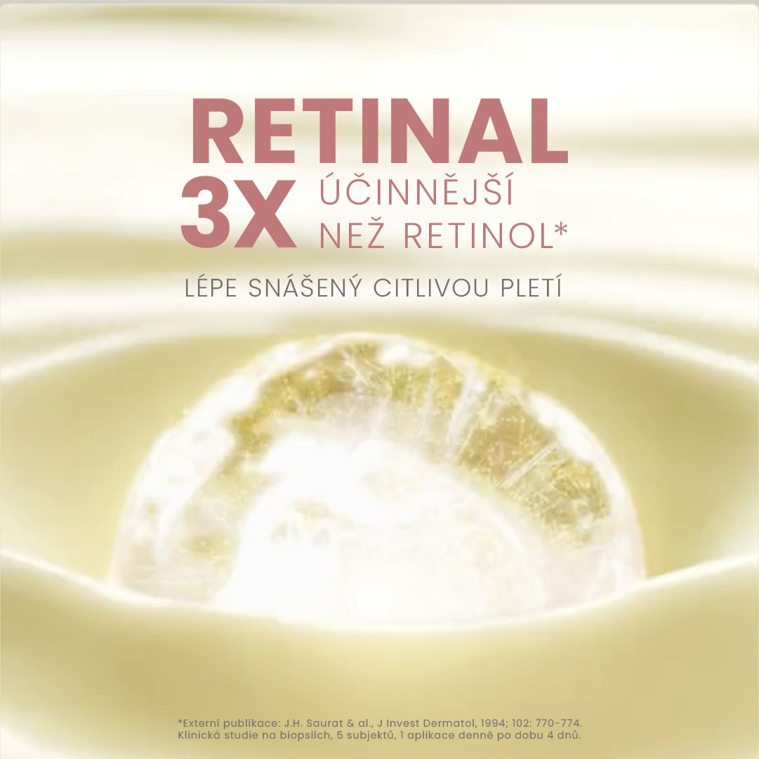 - Retinal 0,05 %: koriguje vzhled vrásek