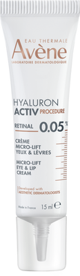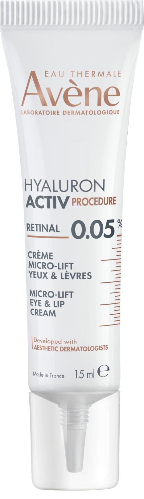 Avène Hyal.Activ PROCED. Mikro-Lift oči a rty 15 mlVše o produktuDoplňující informaceHodnocení produktuMikro-liftingový krém na oči a rty vyvinutý s klíčovými aktivními látkami uznávanými v estetické medicíně, které jsou obsaženy v čisté a koncentrované formě. Obsahuje 0,05 % retinalu. Retinal je 3x účinnější než retinol*¹. Tento krém díky přesnému aplikátoru vyplňuje jemné i hluboké vrásky, a to i ty nejlokálnější. Tento krém lze používat samostatně nebo jako doplněk k estetickým procedurám*⁴ (injekce, peeling, blefaroplastika).