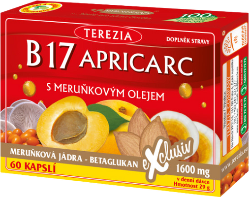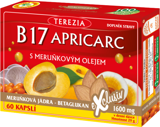1 želatinová kapsle obsahuje 400 mg směsi B17 APRICARC (prášek meruňkového jádra, prášek sušeného plodu rakytníku řešetlákového (Hippophae rhamnoides),prášek lyofilizované REISHI (Ganoderma lucidum), prášek hlívy ústřičné (Pleurotus ostreatus) a oleje z meruňkových jader bez příměsí