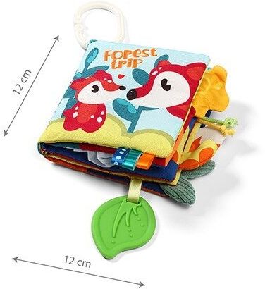 - Šikovné uchopení: Díky speciálnímu uchycení můžete knížku připevnit na postýlku, kočárek nebo autosedačku. Hračku si proto můžete vzít na procházku nebo na výlet autem