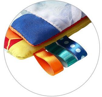 - Šustící prvky: Šustící prvky stimulují zájem děťátka a motivují jej k prozkoumání. Jemný zvuk má vliv na sluch