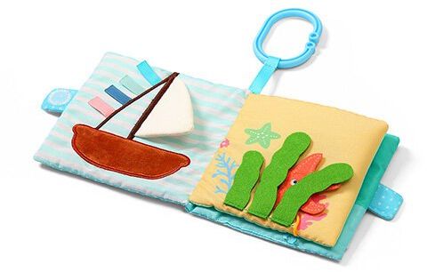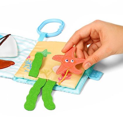 Senzorická knížka s motivem moře umožní děťátku objevit fascinující podmořský svět. Stimuluje smyslový vývoj děťátka od prvních dnů jeho života. Různé materiály a textury stimulují hmat. Části látky jako například plsť jsou měkké a bezpečné. Zůstávají odolné a trvanlivé i po intenzivním hraní a zkoumání. Více informací