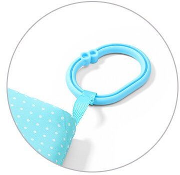 Knížka Babyono je dodávána s praktickým úchytem pro snadné připevnění na postýlku, kočárek, autosedačku a pod.