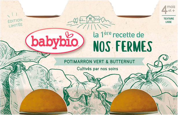 BIO zeleninový příkrm pro děti od 4 měsíců. Receptura složená ze zelené a máslové dýně, které jsme sami vypěstovali na naší ekofarmě ve Francii. Dýně mají přirozeně sladce svěží chuť a díky bohatému obsahu vlákniny jsou lehce stravitelné. Jsou bohatým zdrojem vitamínů, minerálů i omega-3 mastných kyselin. Více informací
