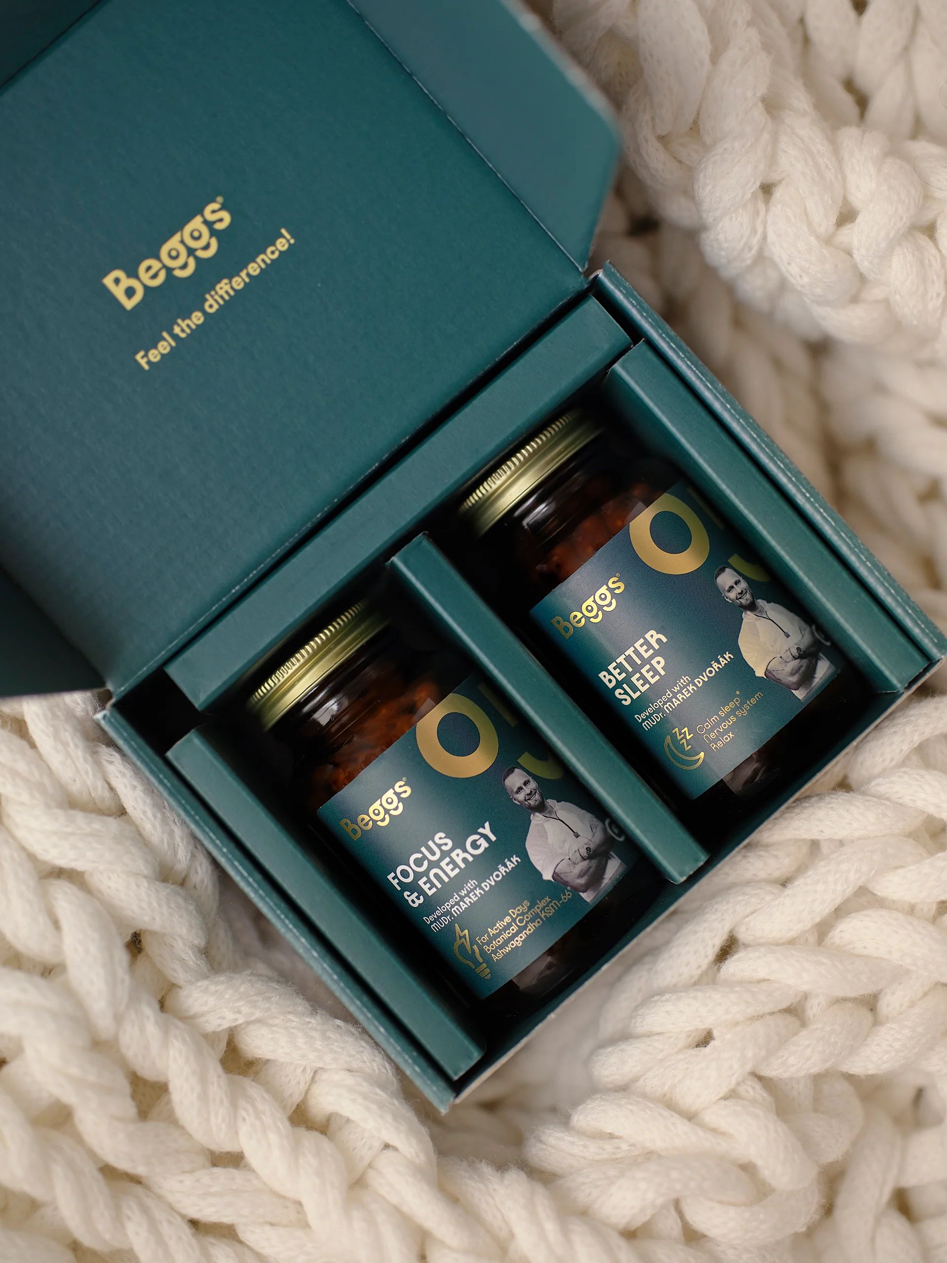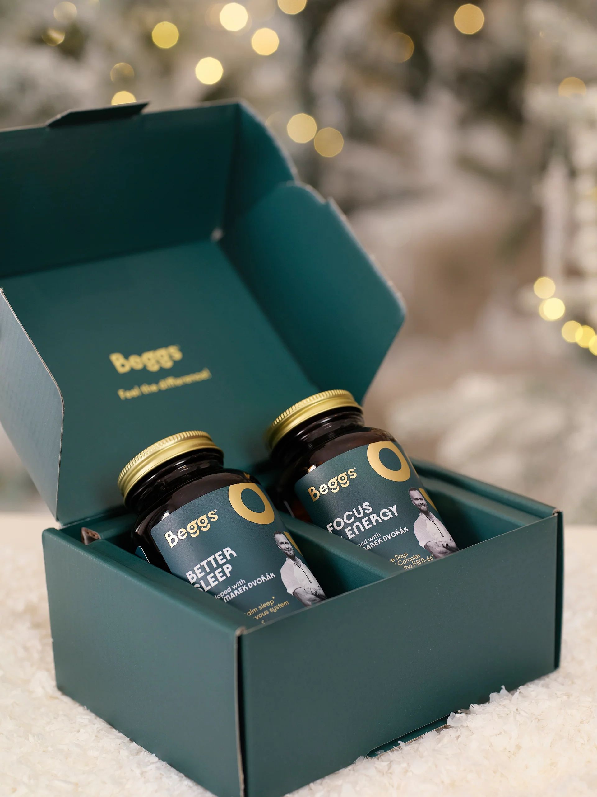 Beggs Better Sleep je společníkem pro chvíle, kdy chcete zakončit den v klidu a dopřát si kvalitní odpočinek. Obsahuje pečlivě vybranou kombinaci rostlinných extraktů – kozlíku lékařského, chmele otáčivého a mučenky pletní. Kozlík a mučenka přispívají k relaxaci a duševní pohodě, přičemž kozlík v kombinaci s chmelem podporuje klidný spánek. Tato směs je doplněna o GABA (kyselina gama-aminomáselná) a vitamin B6, který přispívá k normální činnosti nervové soustavy a k psychické činnosti.