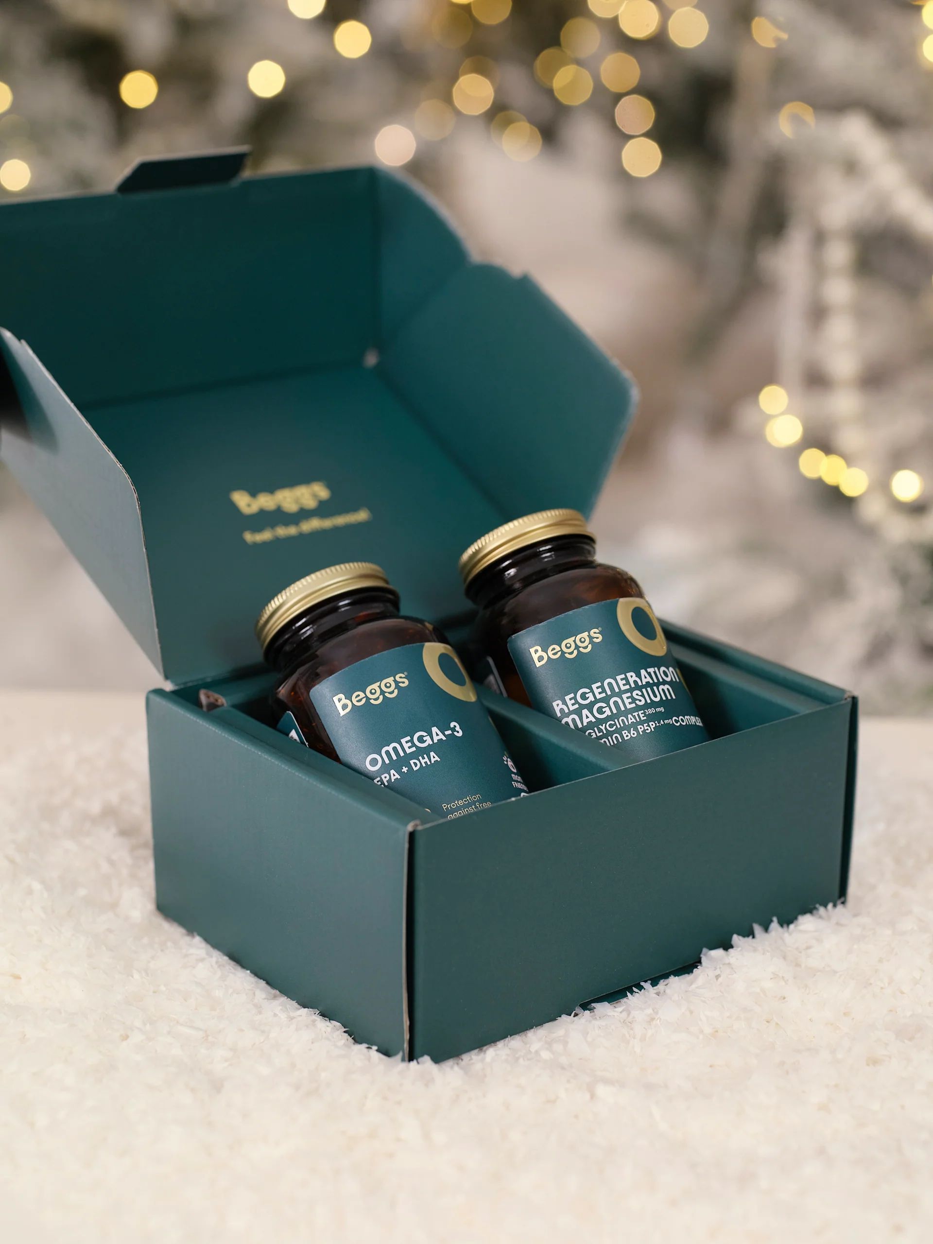 Dárkový balíček pro každého, kdo ocení kvalitní doplňky stravy v každodenní výživě - Beggs Omega a Beggs Magnesium. Více informací