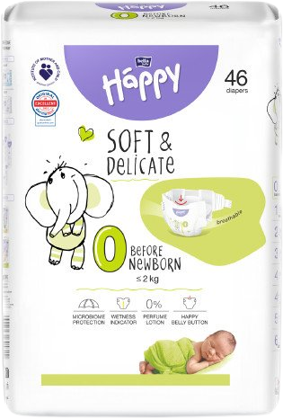Dětské pleny Happy Soft & Delicate Before Newborn (0) jsou vyrobeny z nejkvalitnějších materiálů, dokonale se přizpůsobí tělu dítěte a poskytují příjemný pocit sucha. Více informací