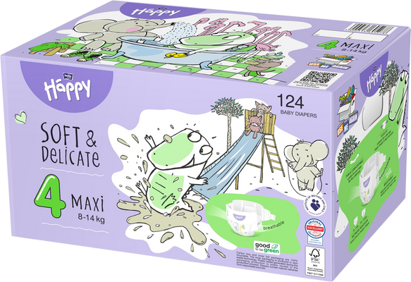 Dětské pleny Happy Soft & Delicate Maxi (4) jsou doporučeny pro novorozence s hmotností 8-14 kg. Jsou vyrobeny z nejkvalitnějších materiálů, dokonale se přizpůsobí tělu dítěte a poskytují příjemný pocit sucha. Jsou navrženy tak, aby vyhovovaly potřebám té nejcitlivější pokožky – neobsahují žádné alergeny a minimalizují riziko vzniku opruzenin.