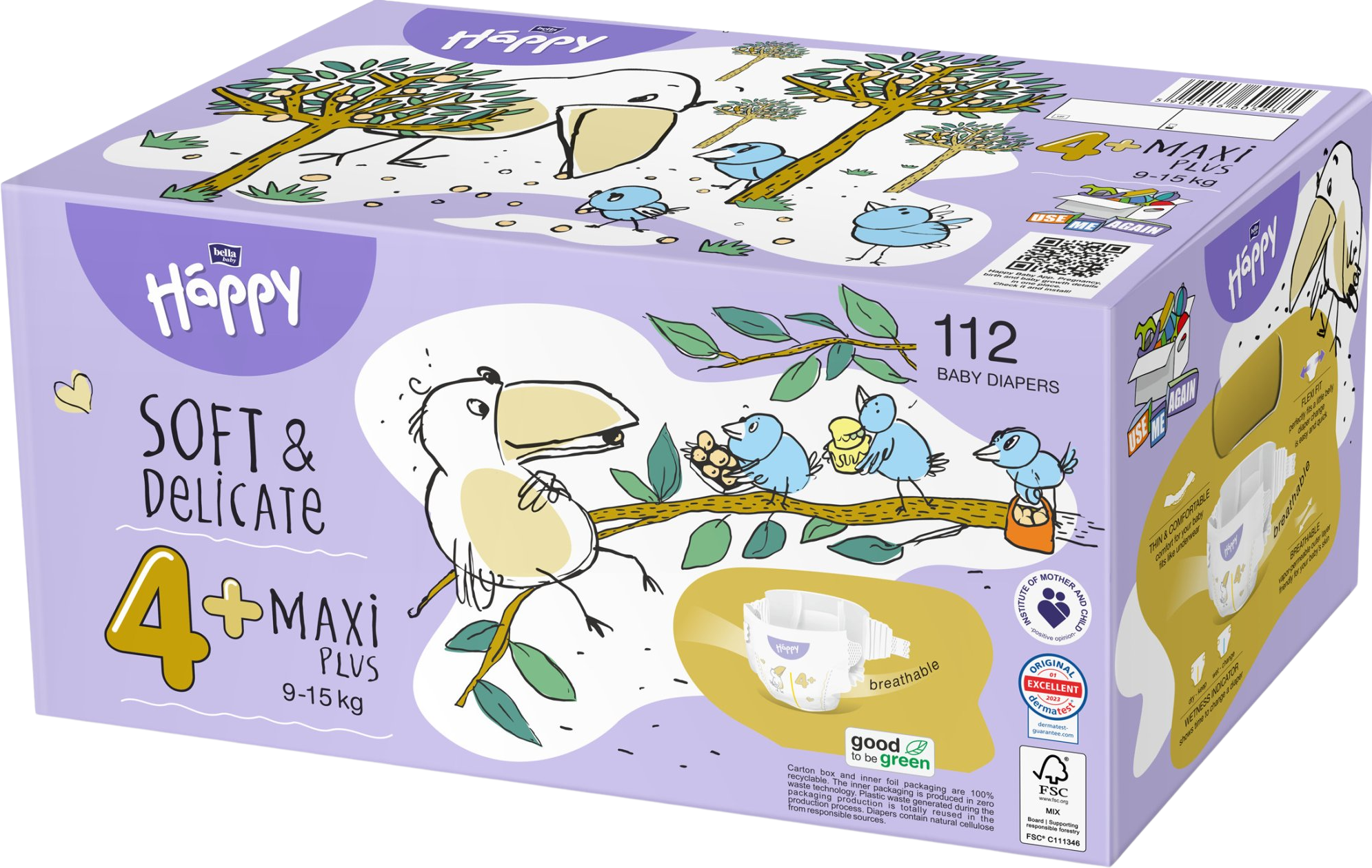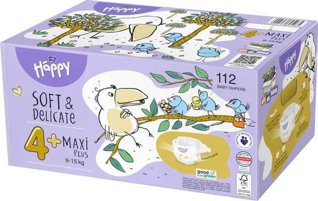 Dětské pleny Happy Soft & Delicate Maxi Plus (4+) jsou doporučeny pro novorozence s hmotností 9-15 kg. Jsou vyrobeny z nejkvalitnějších materiálů, dokonale se přizpůsobí tělu dítěte a poskytují příjemný pocit sucha. Jsou navrženy tak, aby vyhovovaly potřebám té nejcitlivější pokožky – neobsahují žádné alergeny a minimalizují riziko vzniku opruzenin.