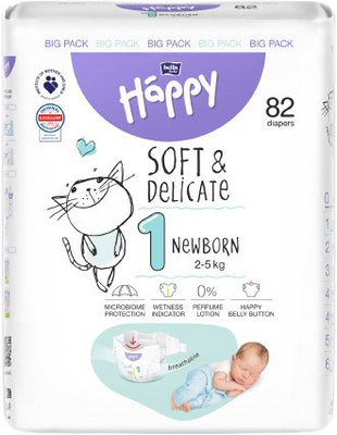 Dětské pleny Happy Soft & Delicate Newborn (1) jsou vyrobeny z nejkvalitnějších materiálů, dokonale se přizpůsobí tělu dítěte a poskytují příjemný pocit sucha. Více informací