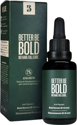Better be bold Anti-Pigment Sérum pro zdravou kůži na hlavě 30 mlVše o produktuDoplňující informaceHodnocení produktuMise za zkrásňování života a ostatně i fyzična mužů bez vlasů nikdy nekončí. Nejnovějším přírůstkem do řady Better Be Bold proto je sérum na holou hlavu.