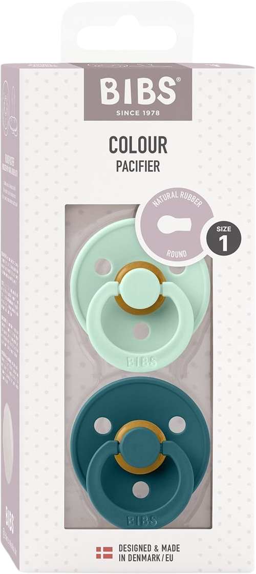 BIBS Colour Dudlíky z přírodního kaučuku - velikost 1, Nordic Mint/Forest Lake 2 ksVše o produktuDoplňující informaceHodnocení produktuBibs je oblíbená dánská značka s tradicí výroby ikonických dudlíků od roku 1978.