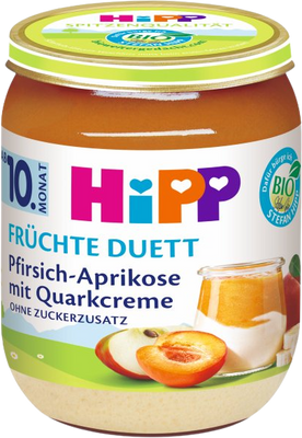 HiPP BIO Ovocný duet Broskev-Meruňka s tvarohovým krémem 160 gVše o produktuDoplňující informaceHodnocení produktuVlastnosti: