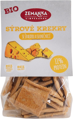 Zemanka Biopekárna BIO Sýrové krekry se špaldou a slunečnicí 100 gVše o produktuDoplňující informaceHodnocení produktuMůžete je servírovat k salátům, se zeleninovými dipy či jako lehkou svačinku s pomazánkou. Jejich výhodou je, že obsahují celozrnnou špaldovou mouku a různé druhy semínek.