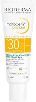 Bioderma Photoderm AKN Mat SPF30, zmatňující krém na opalování - akné 40 mlVše o produktuDoplňující informaceHodnocení produktuPokožka se sklonem ke vzniku nedokonalostí vyžaduje v létě zvláštní pozornost. Teplo, prach a sluneční záření často zhoršují její projevy. Photoderm AKN Mat SPF 30 je pomáhá regulovat, brání ucpávání pórů a vzniku nedokonalostí a kromě toho poskytuje pokožce vysokou ochranu před sluncem.