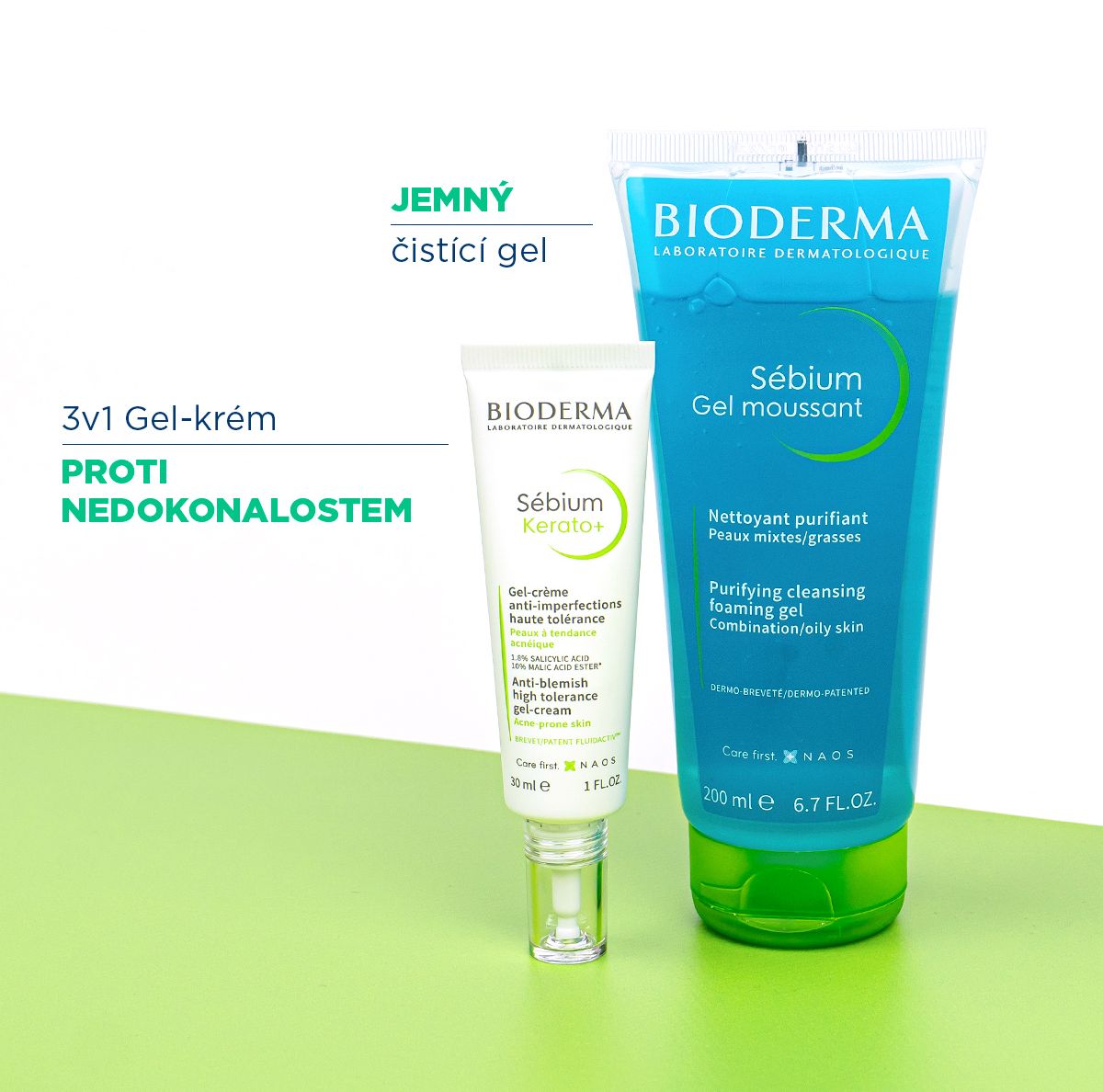 - Čisticí gel, který jemně myje pleť a reguluje tvorbu mazu