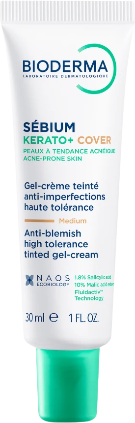 BIODERMA Sébium Kerato+ Cover je tónovací péče 2v1 pro pleť se sklonem k nedokonalostem. Kryje až na 12 hodin, sjednocuje tón a zanechává přirozeně matný vzhled. Více informací