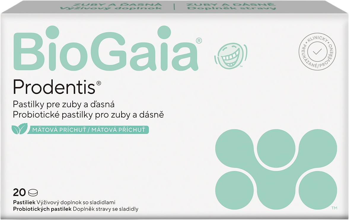 BioGaia® Prodentis® pastilky je doplněk stravy obsahující patentovaný probiotický kmen Limosilactobacillus reuteri Prodentis®. Jedna pastilka obsahuje více než 200 milionů živých bakterií L. reuteri Prodentis®.
