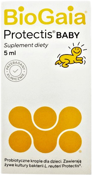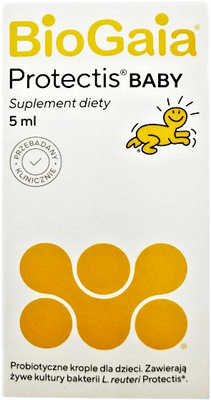 Probiotické kapky pro děti od narození je doplněk stravy. Představuje bezpečný, jednoduchý a účinný způsob, jak poskytnout bakterie odpovídající složení dětské střevní mikrobioty. Kapky lze podávat na lžičce, vmíchat do mléka nebo do jiného nápoje nebo pokrmu, což je ideální způsob přípravy pro malé děti, které ještě nezvládnou užívání tabletu. Přípravek obsahuje 100 milionů živých aktivních bakterií Lactobacillus reuteri Protectis v 5 kapkách.