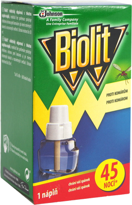 Biolit Náhradní náplň do elektrického odpařovače proti komárům, 45 nocí, 27 mlVše o produktuDoplňující informaceHodnocení produktuOchrání Vás před nepříjemným hmyzem nejméně po dobu 45 nocí (1 noc = 8 až 10 hod.). Kombinovaný odpařovač lze použít i pro vyměnitelné polštářky (1 polštářek na 1 noc = 8 až 10 hod.). Používá se především v ložnicích a jiných obytných místnostech.