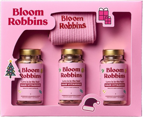 Bloom Robbins Vánoční trio love is in the hair kapsleVše o produktuDoplňující informaceHodnocení produktuVánoční balíček Love is in the Hair x3 kapsle je intenzivní kúra pro vlasy. Obsahuje tři balení extra účinných kapslí s 26 aktivními látkami.
