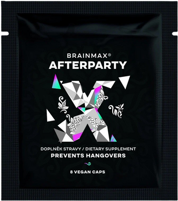 BrainMax AFTERPARTY, Bojovník za rána bez těžkých kocovin 8 kapslíVše o produktuDoplňující informaceHodnocení produktuBRAINMAX® AFTERPARTY je nejrobustnější komplex. Bylo několikrát vědecky prokázáno, že látky v něm, jako DHM či extrakt z opuncie, jsou velmi účinné při řešení příznaků a dopadů kocoviny. Dejte sbohem promarněným dnům po alkoholových radovánkách. Ráno dělá den! Užívejte s jídlem před konzumací alkoholu.