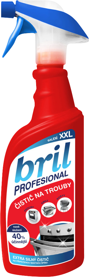 Bril PROFESIONAL Čistič na trouby je extra silný čistič na připečenou mastnou špínu. Nové inovativní složení nabízí ještě účinnější čistící sílu. Důkladně a bez námahy odstraní mastnotu a připečenou špínu z trub, grilů, grilovacího příslušenství, roštů, ale i pekáčů a hrnců.