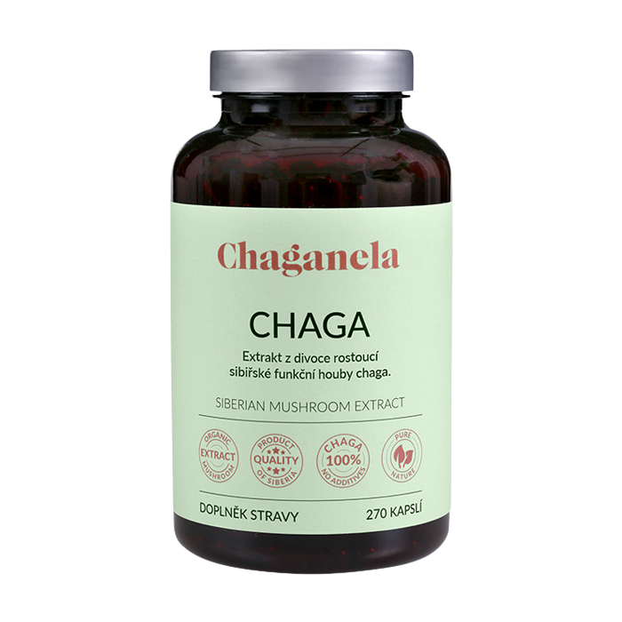 Čaga (také chaga nebo česky rezavec šikmý) je žlutá houba rostoucí na břízách v chladném podnebí Ruska, Číny a Koreje. Pro své zdraví prospěšné účinky je známá také jako „houba nesmrtelnosti“. Na Sibiři se houba čaga používá již po staletí ke zlepšení celkového zdraví a vitality.